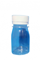 Botol kaca biru ukuran 18ml, tutup pipet putih.